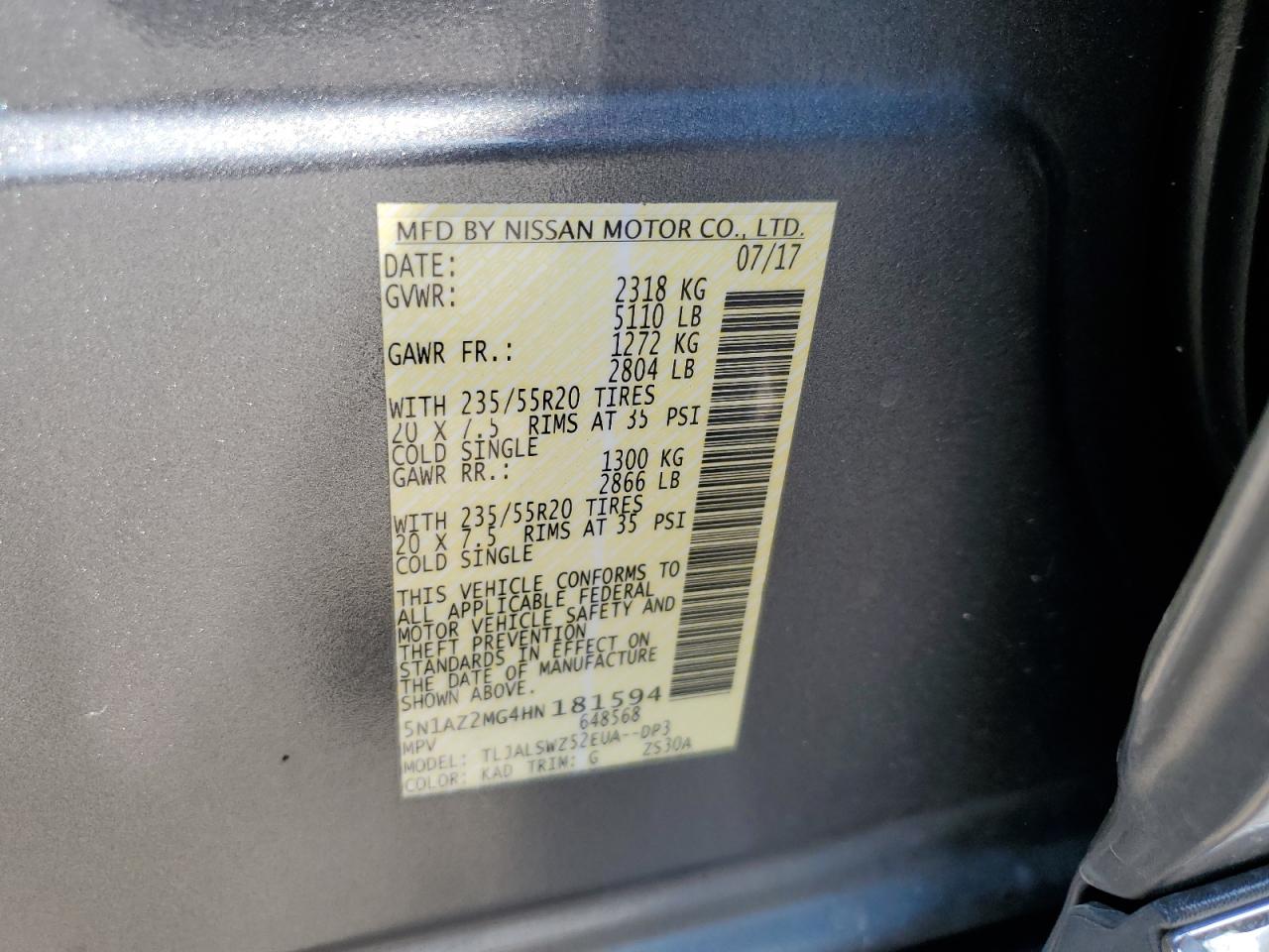 2017 NISSAN MURANO - 5N1AZ2MG4HN181594, колір - Сірий, 3.5, Бензин, із США