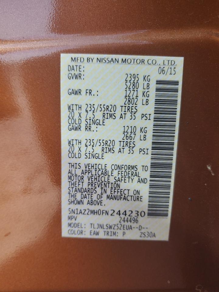 2015 NISSAN MURANO - 5N1AZ2MH0FN244230, колір - Апельсиновий, 3.5, Бензин, Повний привід із США