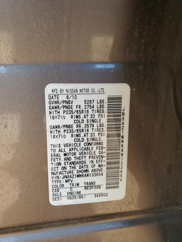 2010 NISSAN MURANO - JN8AZ1MW6AW133654, колір - Золотий, 3.5, Бензин, Повний привід із США
