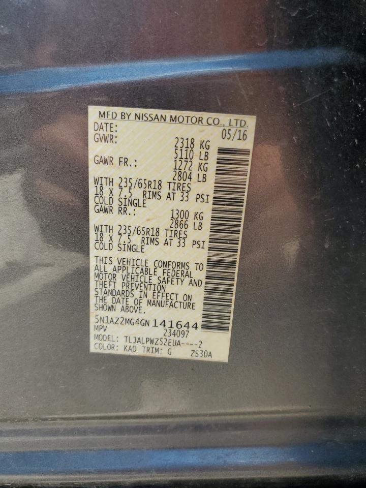 2016 NISSAN MURANO - 5N1AZ2MG4GN141644, колір - Сірий, 3.5, Бензин, із США