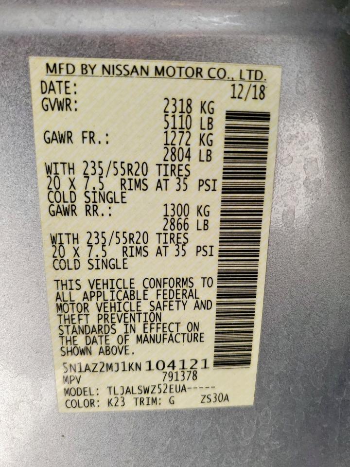2019 NISSAN MURANO - 5N1AZ2MJ1KN104121, колір - Срібний, 3.5, Бензин, із США