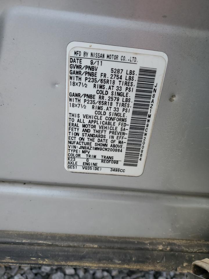 2012 NISSAN MURANO - JN8AZ1MW9CW200864, колір - Срібний, 3.5, Бензин, Повний привід із США