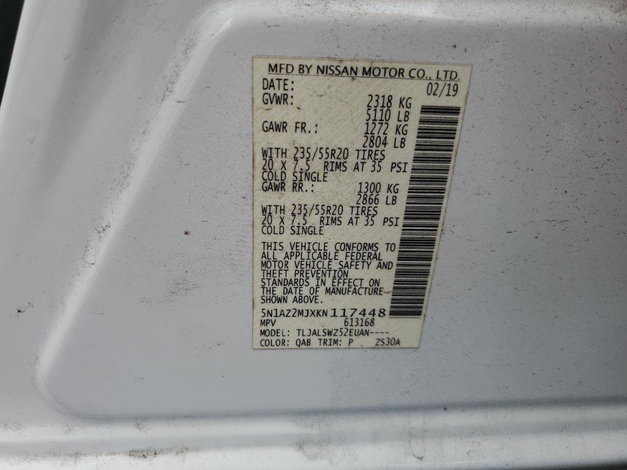 2019 NISSAN MURANO - 5N1AZ2MJXKN117448, колір - Білий, 3.5, Бензин, із США