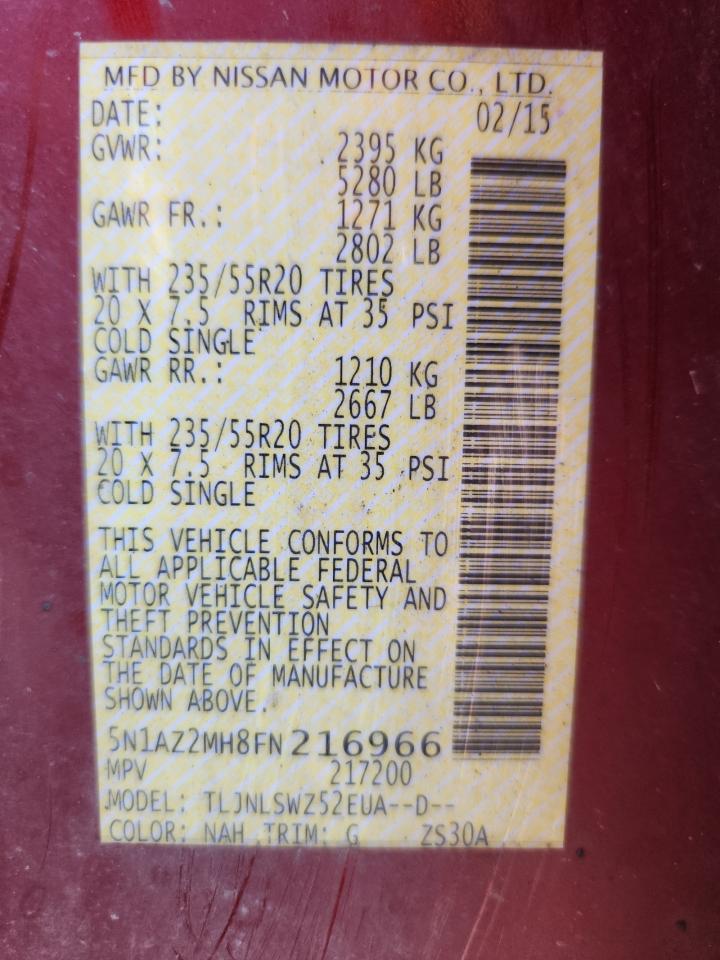 2015 NISSAN MURANO - 5N1AZ2MH8FN216966, колір - Червоний, 3.5, Бензин, Повний привід із США
