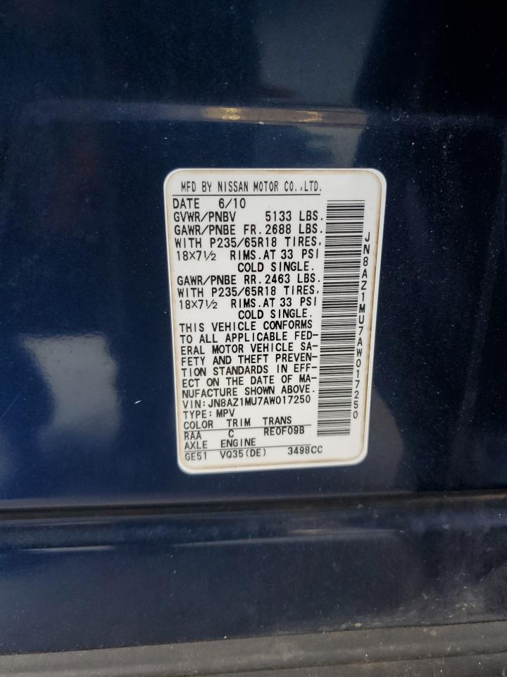 2010 NISSAN MURANO - JN8AZ1MU7AW017250, колір - Синій, 3.5, Бензин, із США