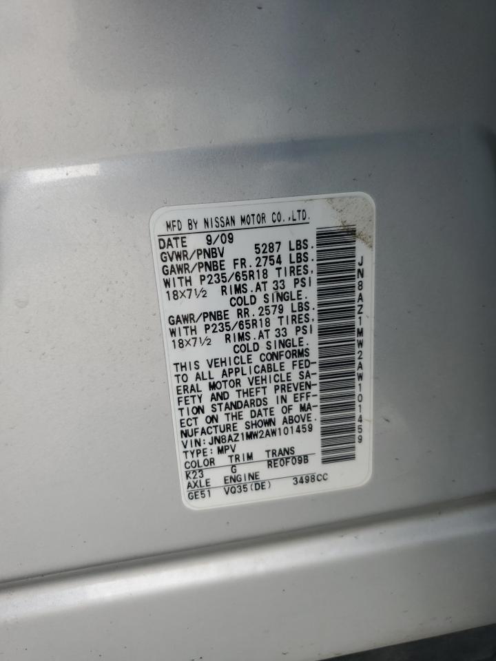 2010 NISSAN MURANO - JN8AZ1MW2AW101459, колір - Срібний, 3.5, Бензин, Повний привід із США