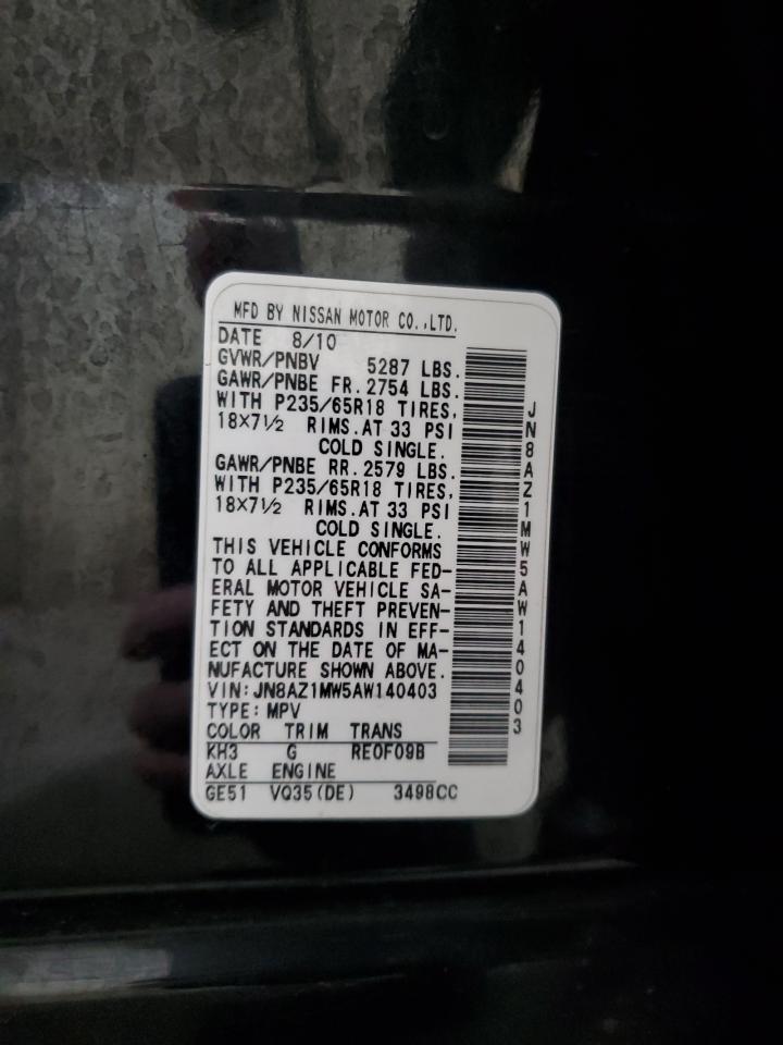 2010 NISSAN MURANO - JN8AZ1MW5AW140403, колір - Чорний, 3.5, Бензин, Повний привід із США