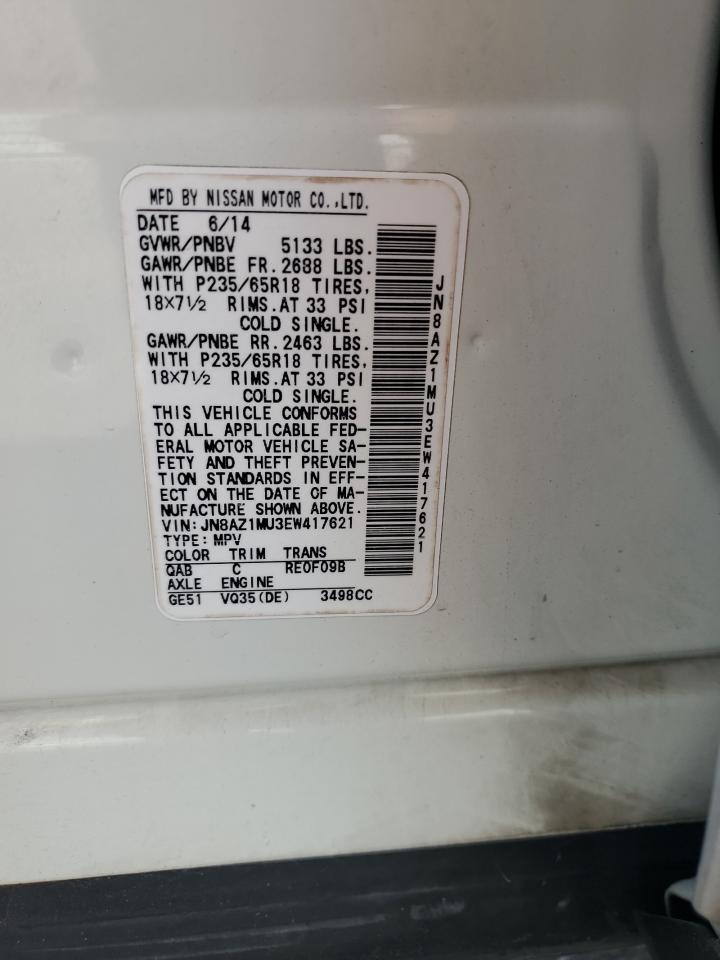 2014 NISSAN MURANO - JN8AZ1MU3EW417621, колір - Білий, 3.5, Бензин, із США