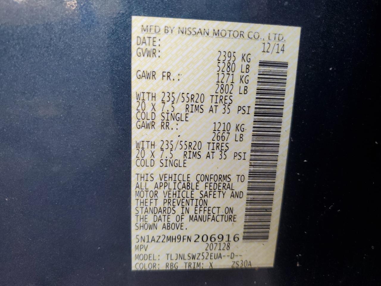 2015 NISSAN MURANO - 5N1AZ2MH9FN206916, колір - Синій, 3.5, Бензин, Повний привід із США