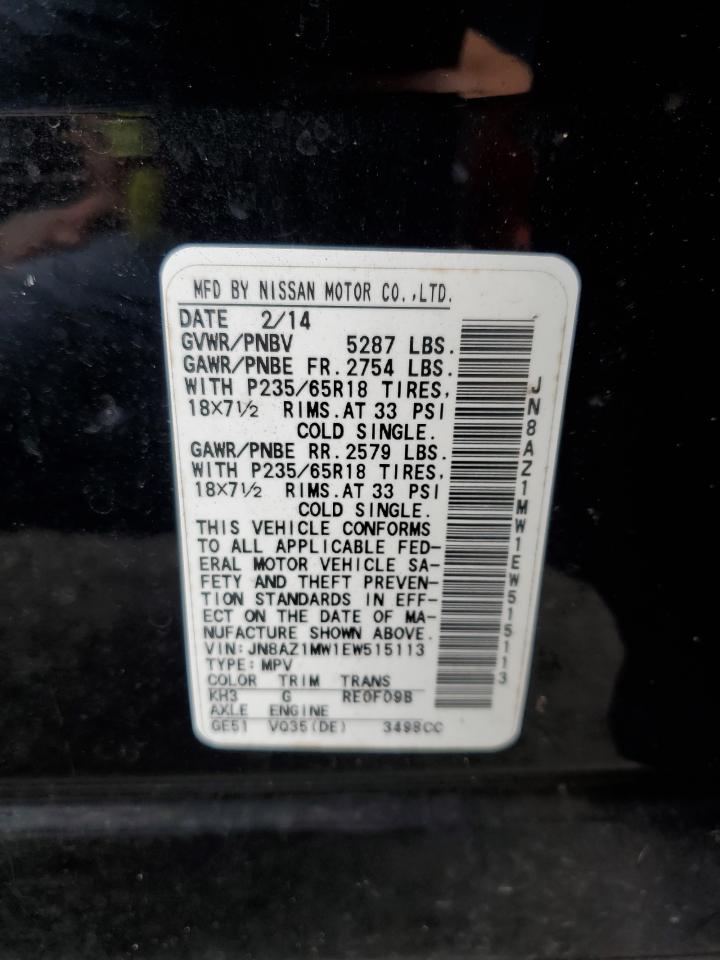 2014 NISSAN MURANO - JN8AZ1MW1EW515113, колір - Чорний, 3.5, Бензин, Повний привід із США