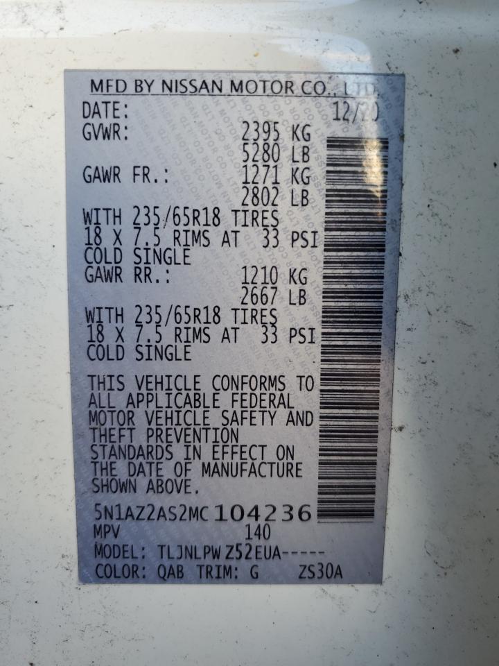 2021 NISSAN MURANO - 5N1AZ2AS2MC104236, колір - Білий, 3.5, Бензин, Повний привід із США