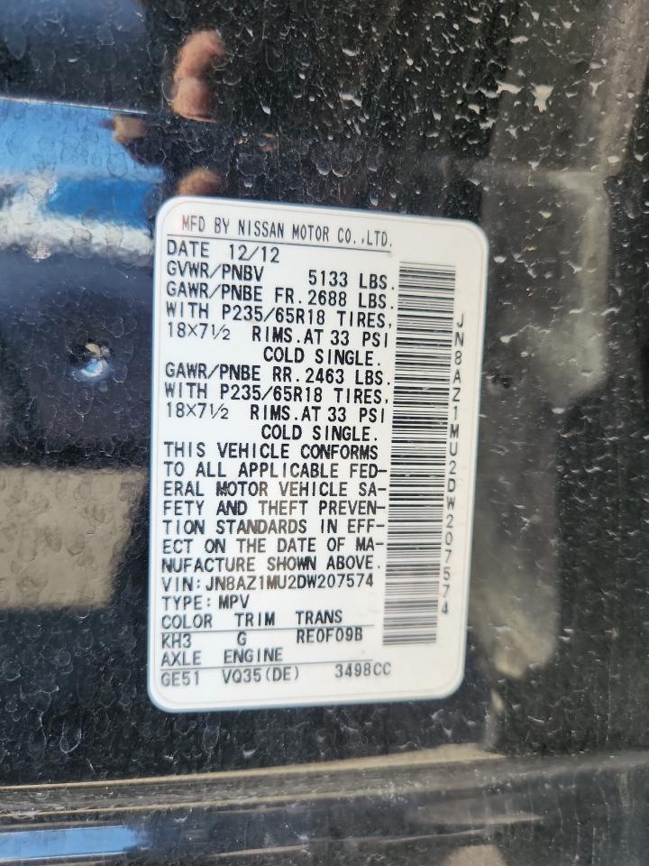 2013 NISSAN MURANO - JN8AZ1MU2DW207574, колір - Чорний, 3.5, Бензин, із США