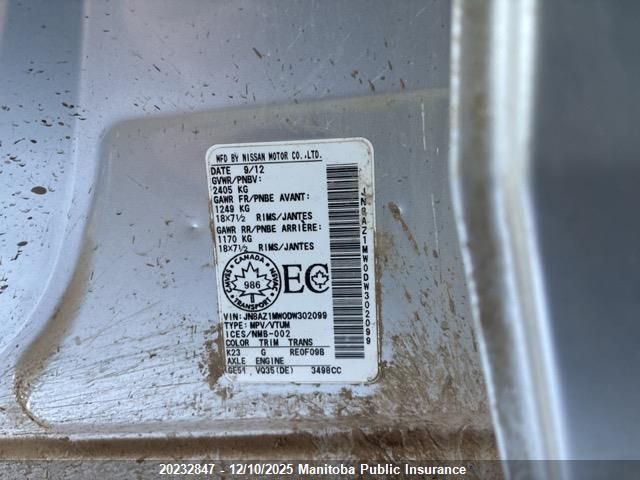 Колір СірийЦиліндри 6Привід Повний привідVIN JN8AZ1MW0DW302099Стан СтаціонарноУшкодження ЗадняДата аукціона 2025-12-17