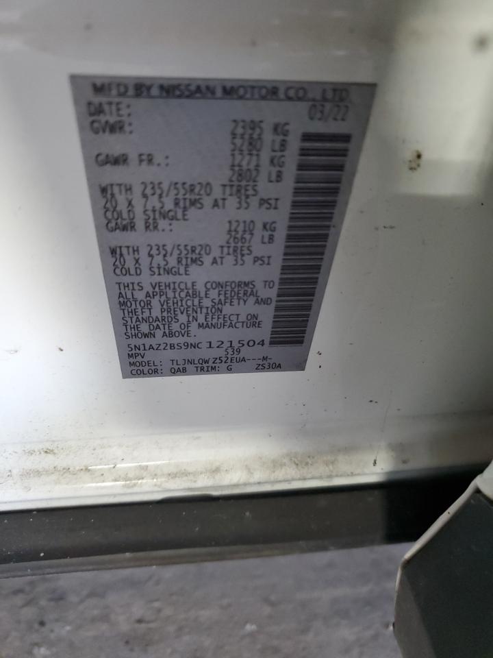2022 NISSAN MURANO - 5N1AZ2BS9NC121504, колір - Білий, 3.5, Бензин, Повний привід із США