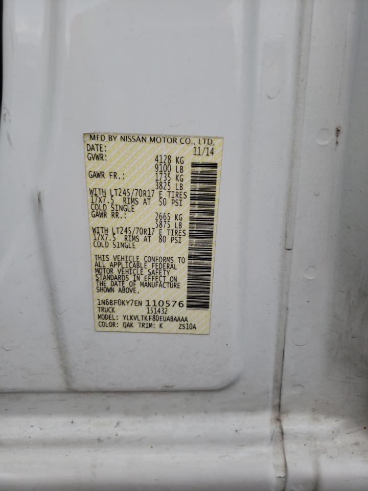 2014 NISSAN NV1500 - 1N6BF0KY7EN110576, колір - Білий, 4.0, Бензин, Задній привід із США