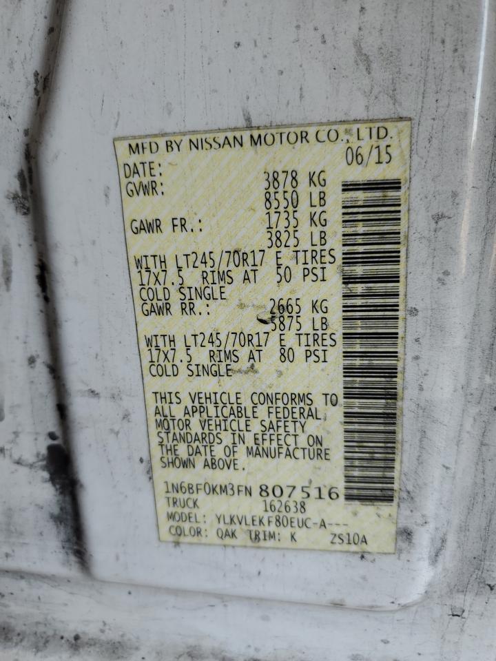 2015 NISSAN NV1500 - 1N6BF0KM3FN807516, колір - Білий, 4.0, Бензин, Задній привід із США