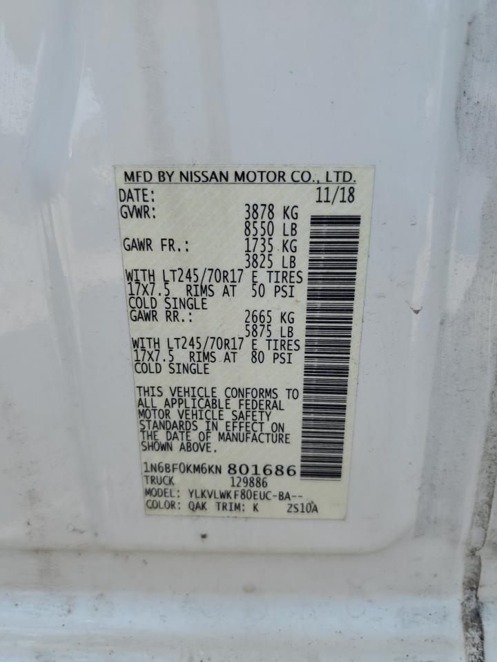 2019 NISSAN NV1500 - 1N6BF0KM6KN801686, колір - Білий, 4.0, Бензин, Задній привід із США