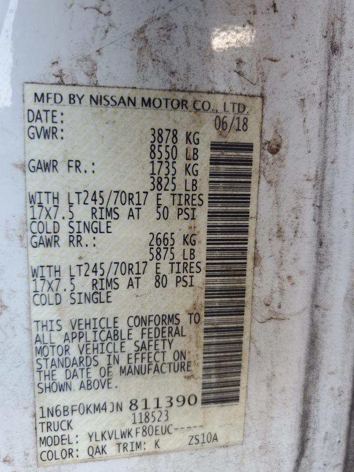 2018 NISSAN NV1500 - 1N6BF0KM4JN811390, колір - Білий, 4.0, Бензин, Задній привід із США