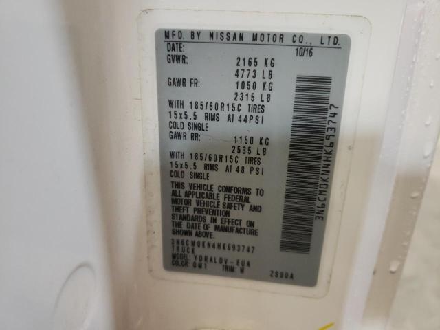 2017 NISSAN NV200 - 3N6CM0KN4HK693747, колір - Білий, 2.0, Бензин, із США