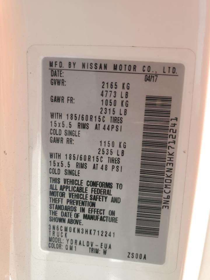 2017 NISSAN NV200 - 3N6CM0KN3HK712241, колір - Білий, 2.0, Бензин, із США