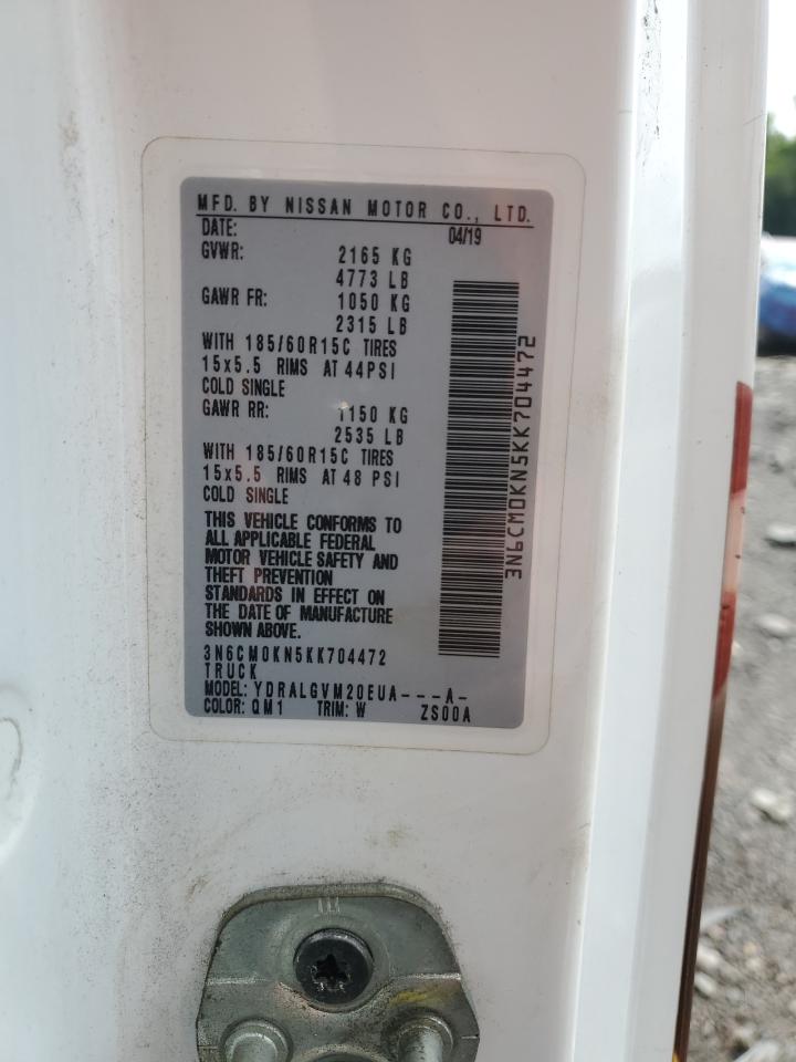 2019 NISSAN NV200 - 3N6CM0KN5KK704472, колір - Білий, 2.0, Бензин, із США