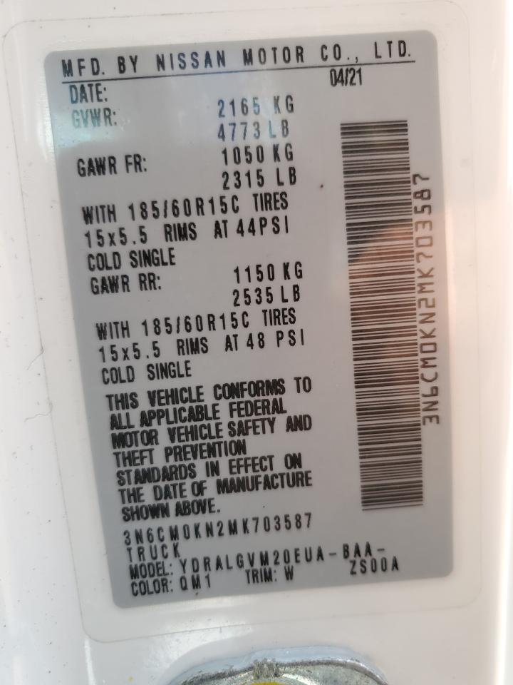 2021 NISSAN NV200 - 3N6CM0KN2MK703587, колір - Білий, 2.0, Бензин, із США