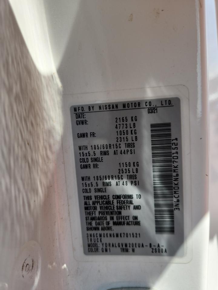 2021 NISSAN NV200 - 3N6CM0KN6MK701521, колір - Білий, 2.0, Бензин, із США