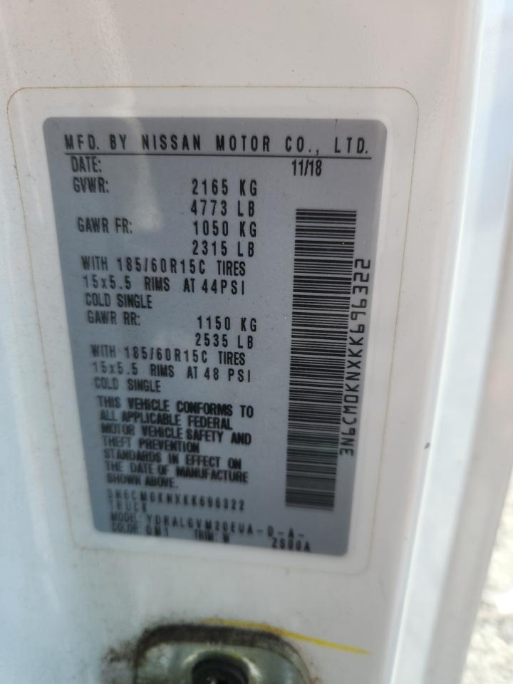 2019 NISSAN NV200 - 3N6CM0KNXKK696322, колір - Білий, 2.0, Бензин, із США