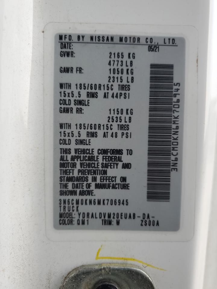 2021 NISSAN NV200 - 3N6CM0KN6MK706945, колір - Білий, 2.0, Бензин, із США