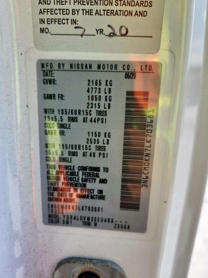 2020 NISSAN NV200 - 3N6CM0KN7LK703681, колір - Білий, 2.0, Бензин, із США