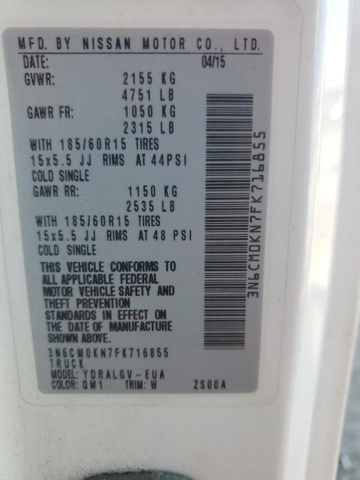 2015 NISSAN NV200 - 3N6CM0KN7FK716855, колір - Білий, 2.0, Бензин, із США