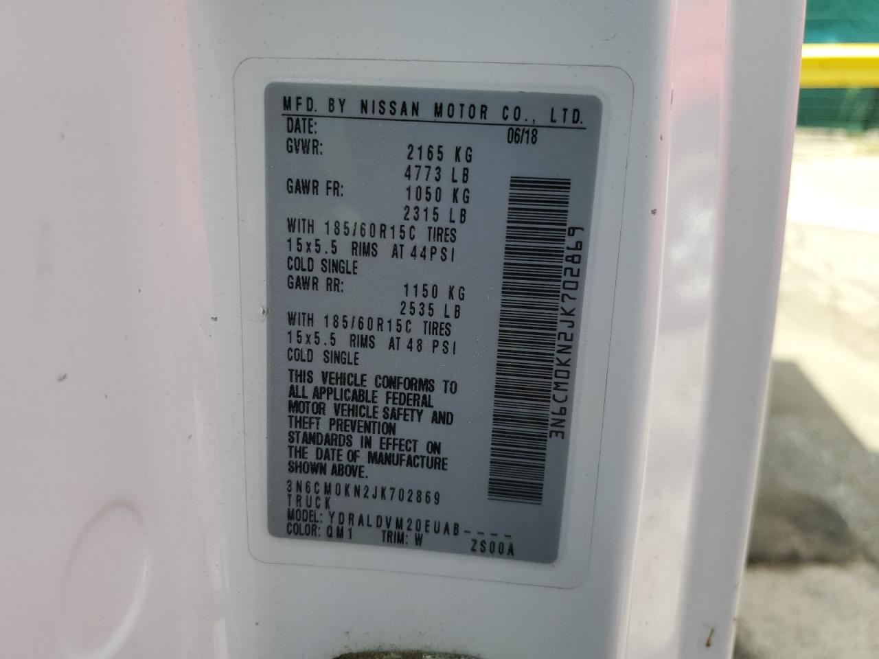 2018 NISSAN NV200 - 3N6CM0KN2JK702869, колір - Білий, 2.0, Бензин, із США