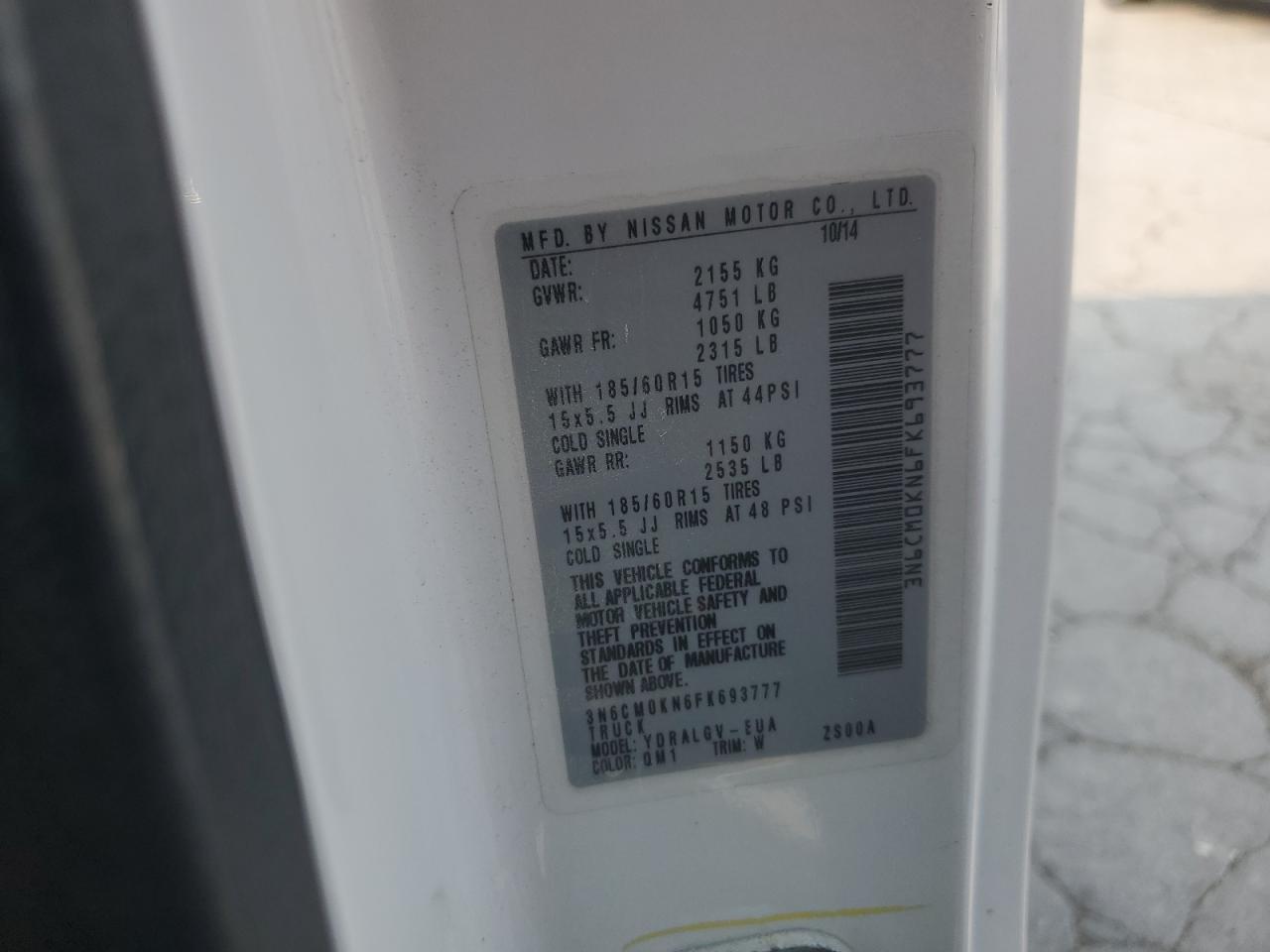 2015 NISSAN NV200 - 3N6CM0KN6FK693777, колір - Білий, 2.0, Бензин, із США