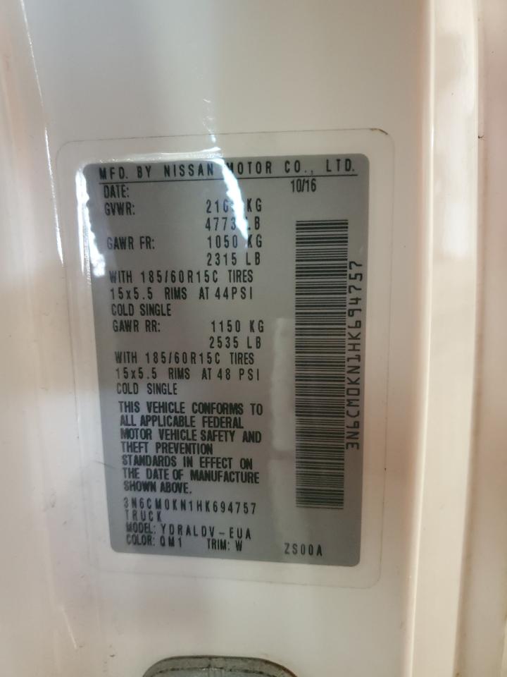 2017 NISSAN NV200 - 3N6CM0KN1HK694757, колір - Білий, 2.0, Бензин, із США