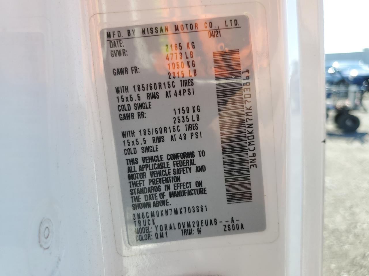 2021 NISSAN NV200 - 3N6CM0KN7MK703861, колір - Білий, 2.0, Бензин, із США