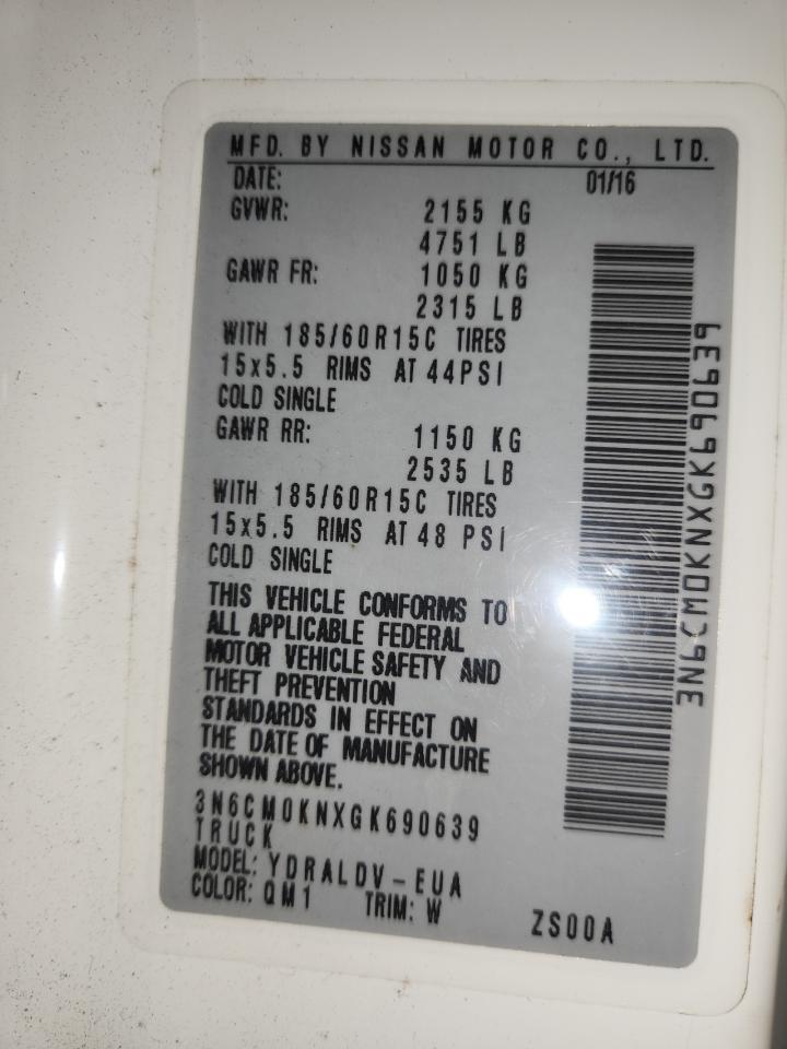 2016 NISSAN NV200 - 3N6CM0KNXGK690639, колір - Білий, 2.0, Бензин, із США