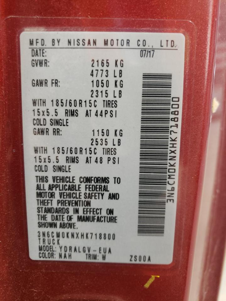 2017 NISSAN NV200 - 3N6CM0KNXHK718800, колір - Бургундія, 2.0, Бензин, із США