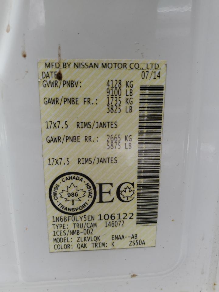 2014 NISSAN NV2500 - 1N6BF0LY5EN106122, колір - Білий, 4.0, Бензин, Задній привід із США