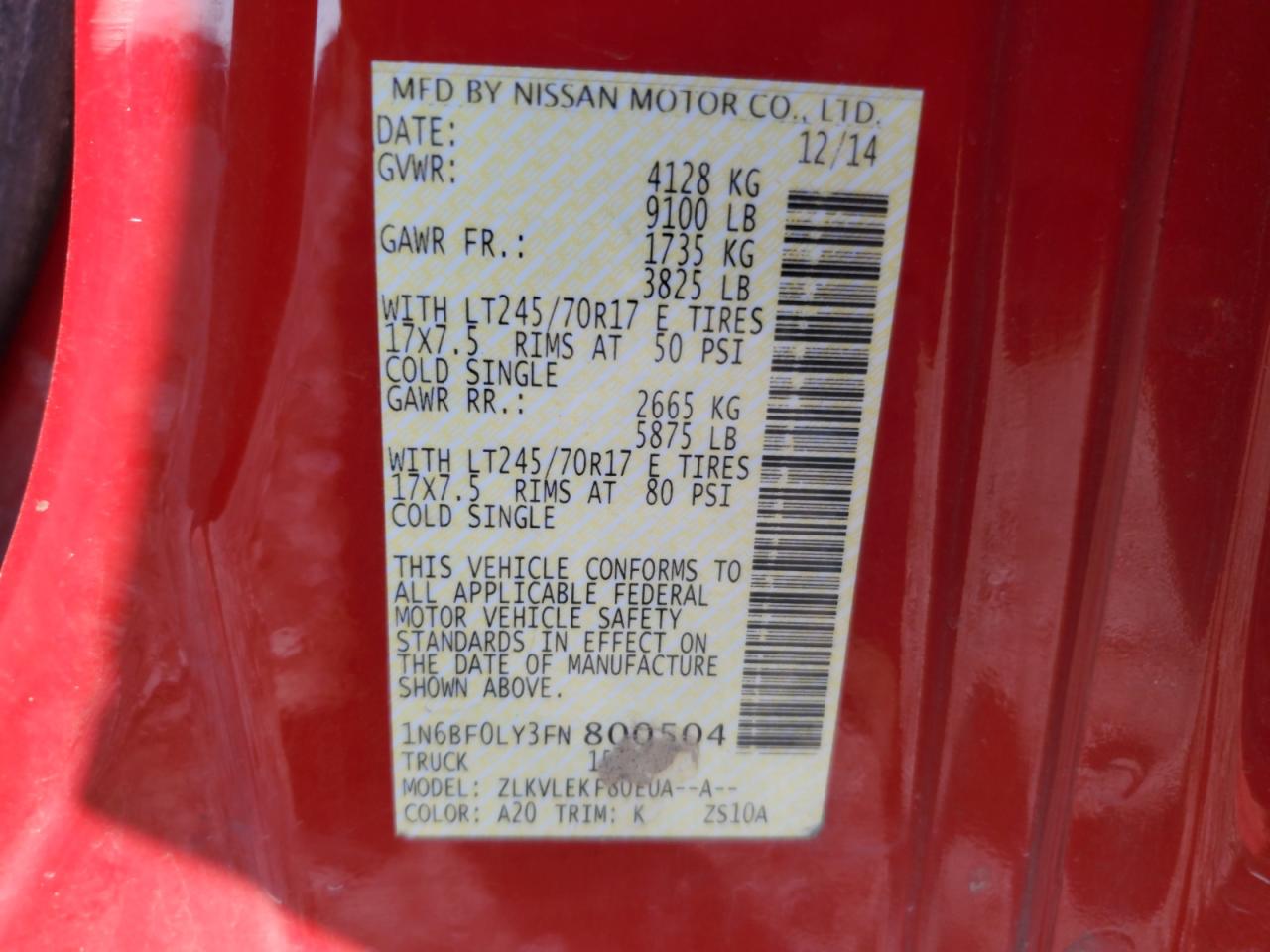 2015 NISSAN NV2500 - 1N6BF0LY3FN800504, колір - Червоний, 4.0, Бензин, Задній привід із США