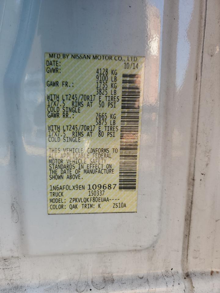 2014 NISSAN NV2500 - 1N6AF0LX9EN109687, колір - Білий, 5.6, Бензин, Задній привід із США