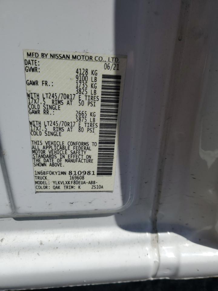 2021 NISSAN NV2500 - 1N6BF0KY1MN810981, колір - Білий, 4.0, Бензин, Задній привід із США