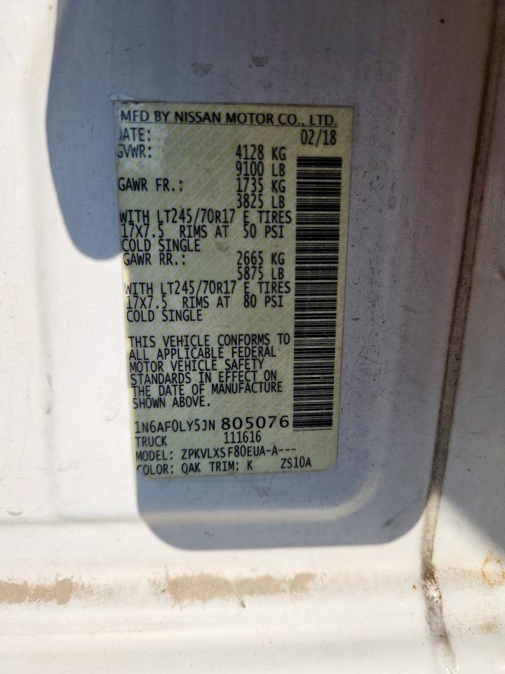 2018 NISSAN NV2500 - 1N6AF0LY5JN805076, колір - Білий, 5.6, Бензин, Задній привід із США