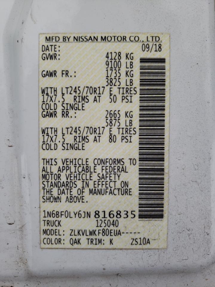 2018 NISSAN NV2500 - 1N6BF0LY6JN816835, колір - Білий, 4.0, Бензин, Задній привід із США