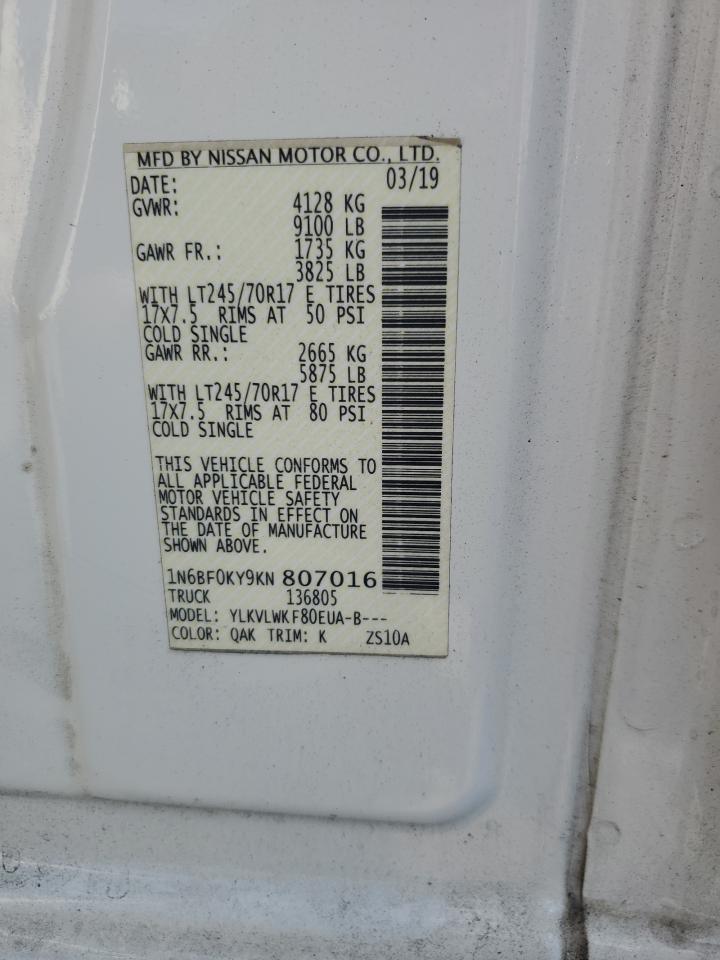 2019 NISSAN NV2500 - 1N6BF0KY9KN807016, колір - Білий, 4.0, Бензин, Задній привід із США