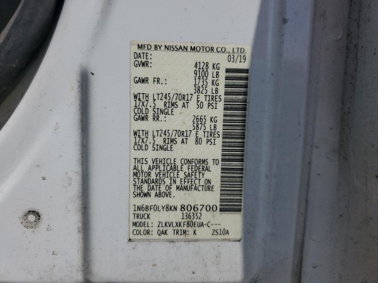 2019 NISSAN NV2500 - 1N6BF0LY8KN806700, колір - Білий, 4.0, Бензин, Задній привід із США