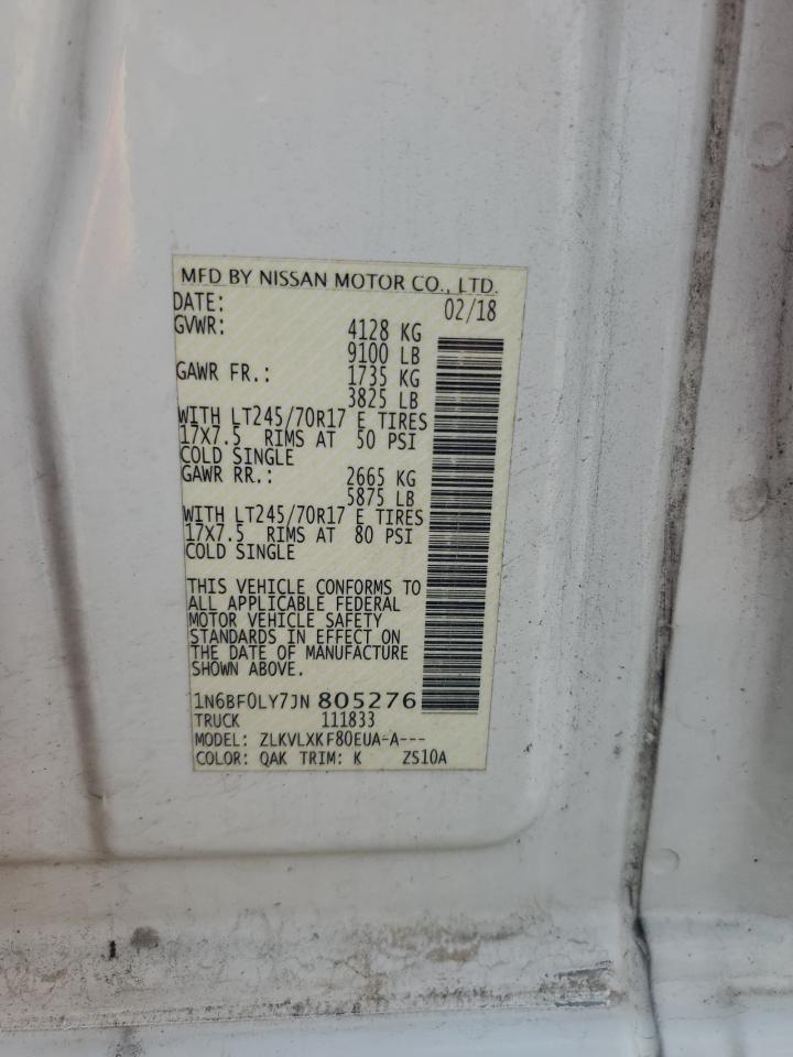 2018 NISSAN NV2500 - 1N6BF0LY7JN805276, колір - Білий, 4.0, Бензин, Задній привід із США