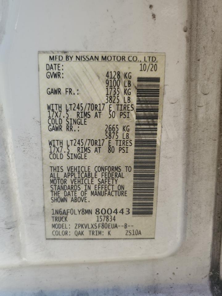 2021 NISSAN NV2500 - 1N6AF0LY8MN800443, колір - Білий, 5.6, Бензин, Задній привід із США