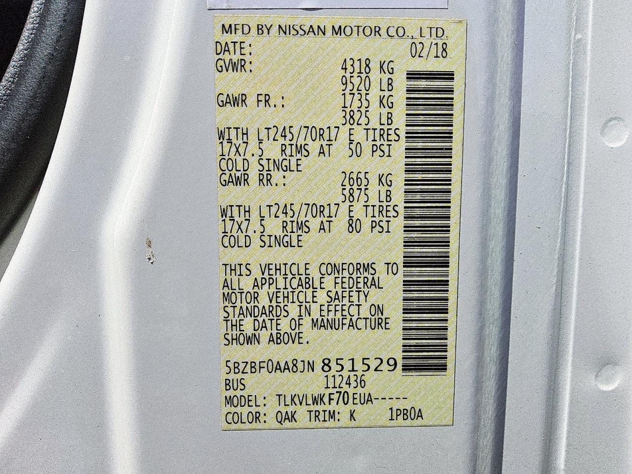 2018 NISSAN NV3500 - 5BZBF0AA8JN851529, колір - Білий, 4.0, Бензин, Задній привід із США