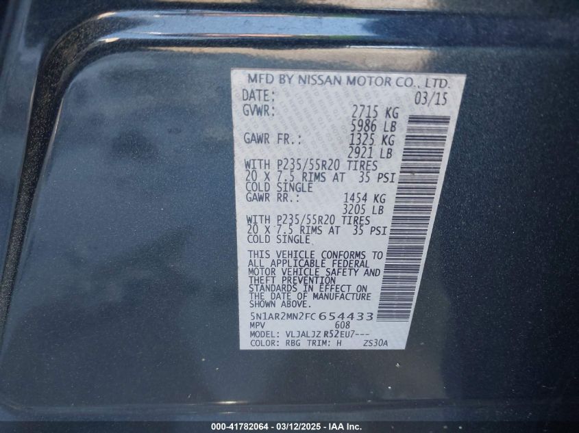 2015 NISSAN PATHFINDER - 5N1AR2MN2FC654433, колір - Чорний, 3.5, Бензин, Передній привід із США