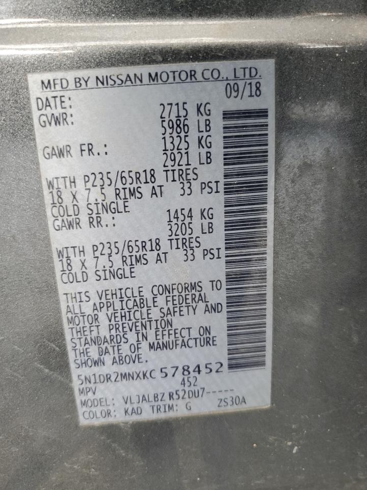 2019 NISSAN PATHFINDER - 5N1DR2MNXKC578452, колір - Сірий, 3.5, Бензин, із США